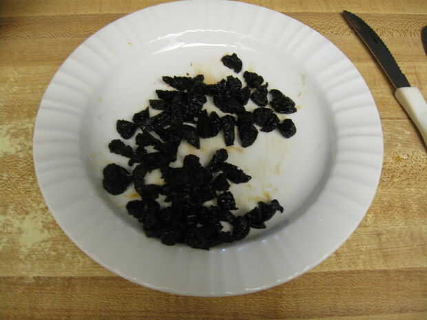 Si usted siente que su fruta es muy grande, corte más pequeño. También, si usted está usando las tuercas este es el punto para añadirlos.