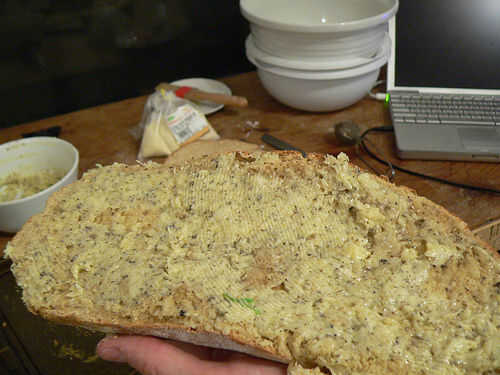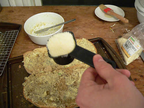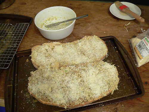 Nota: En estas fotos agregue el queso parmesano por separado, pero es mejor agregar a la mezcla de mantequilla primero (como se describe en el paso 7).