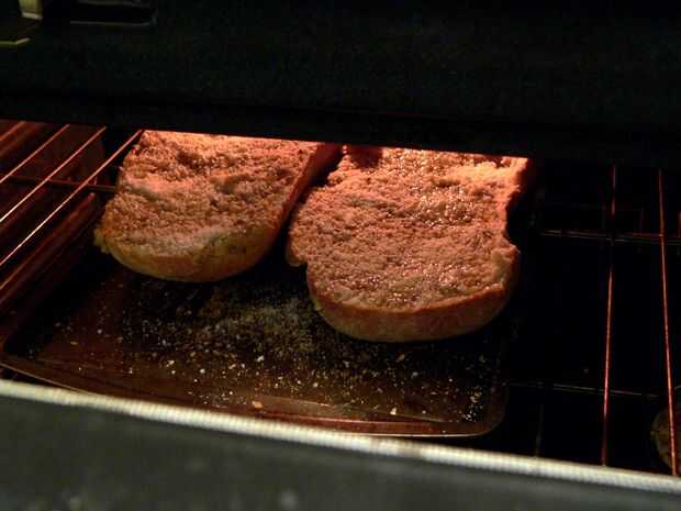 Asar el pan de ajo con la puerta del horno entreabierta hasta que esté dorada y crujiente. Usar una parrilla media en el horno para evitar que se queme demasiado rápido.