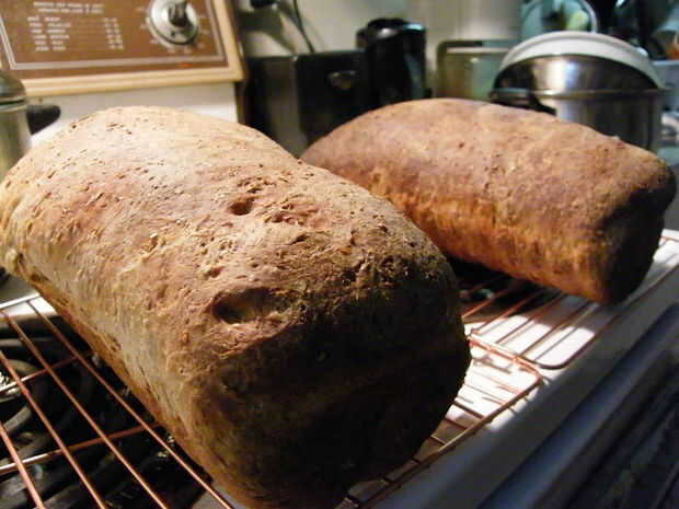 Me gusta hacer mi propio pan con diferentes harinas y granos. Se trata de un pan bien condimentado con una buena textura.La cerveza sobrante agrega un agradable sabor a malteado a este pan. Se pueden utilizar enrollados copos de avena o cebada en lug