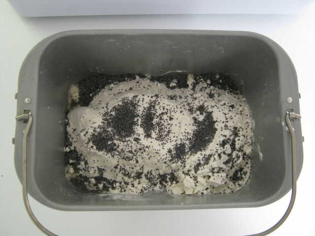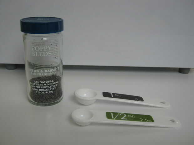 Añadir una y media cucharaditas de semillas de amapola a la bandeja para hornear.