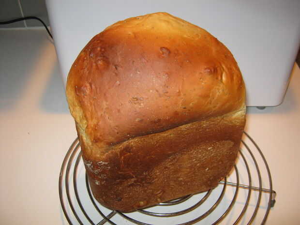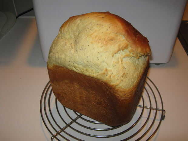 Cuidadosamente retire la bandeja de pan muy caliente de la máquina de pan y sacar el pan según las instrucciones que vienen con su máquina de pan.  Voila! -un hermoso y delicioso pan Challah!