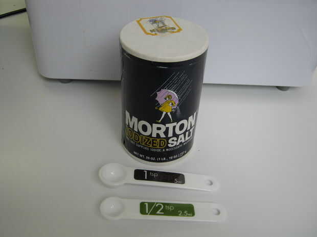 Medir la una y media cucharaditas de sal y añadir a la bandeja de pan.