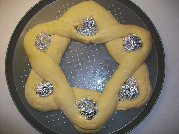 Una vez terminada su pan levantamiento cepillo el lavado de huevo toda la parte superior del pan. Si no tienes un pincel de repostería para hacer esto, puede fácilmente utilizar una toalla de papel doblada.