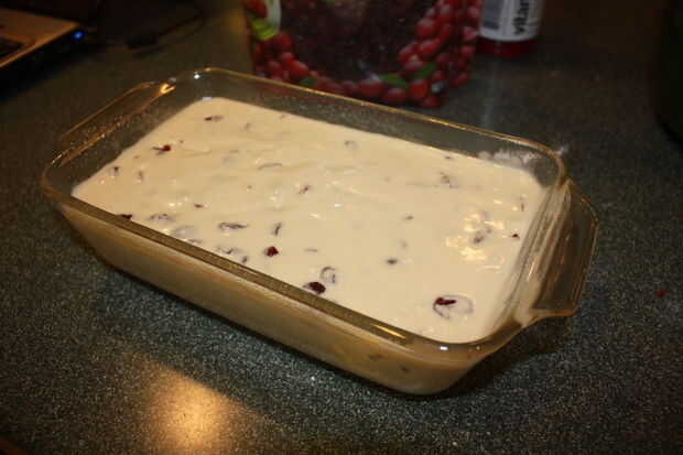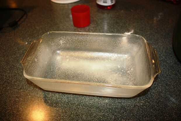 Vaya agarrar el bandeja para pan 9 x 5 y no olvide engrasar los lados, por lo que el pan se puede quitar fácilmente. Vierta la mezcla en, y usted está listo para ir.