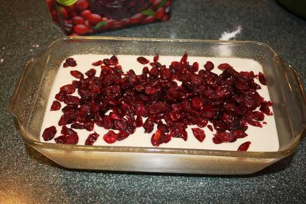 Por alguna razón, yo totalmente olvidé añadir los arándanos y vierte la mezcla en la bandeja para hornear. De cualquier manera funciona, pero me parece más fácil mezclar en cuando tenga un bonito tazón grande en lugar de una sartén pequeña.