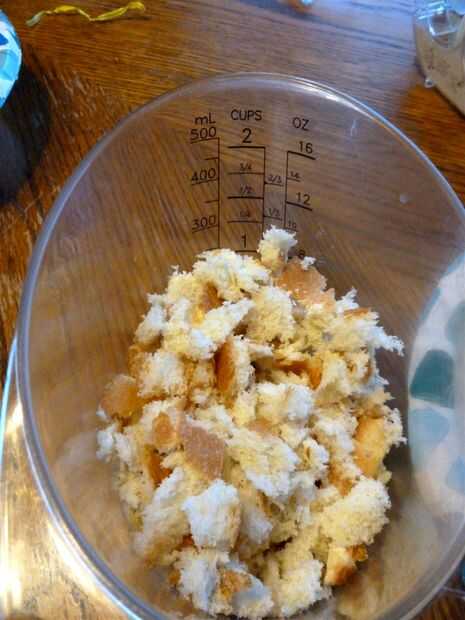 El pan no estaba en las "piezas pequeñas" que afirmaron las instrucciones originales que necesita, pero todos tratamos de hacer las piezas pequeñas y si hacemos otra vez probablemente romperá el pan en un procesador de alimentos.