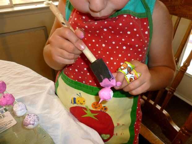 Las instrucciones originales mostraron cada grano en diferentes colores con pinceles más pequeños, algo que sabía que ella no habría sido capaz de dominar en tres y una mitad.
