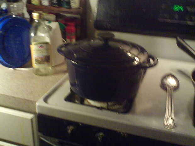 Después de los treinta minutos, retire la cubierta usando guantes para el horno de la olla y deje que la masa a hornear hasta quince minutos más. RELOJ de cerca para que no se queme el pan. Retire la olla usando los guantes de calor inmediatamente cuando el pan es de color marrón. TENGA CUIDADO ES SUPER CALIENTE!!!