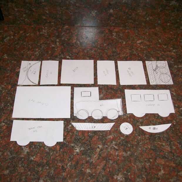 Dibujar y cortar un patrón de piezas que necesita para cortar la masa para la construcción de un tren. Mis patrones son bastante crudos pero se necesita algo medido hacia fuera.