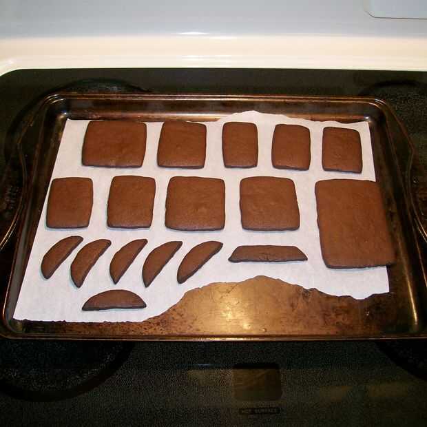Consejo: Cuando tomar el pan de jengibre del horno y todavía caliente volver a cortar las piezas así son exactamente del mismo tamaño que su patrón. No tienes que pero podría ser sacando el pelo cuando llegue el momento de montar y decorar si no!