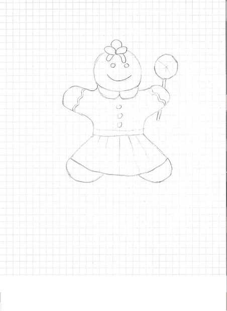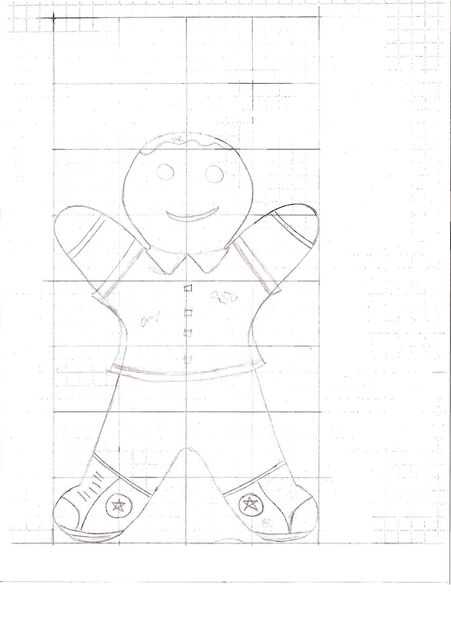 -Dibujar un esquema de la forma deseada en papel gráfico (o ingeniería). Más información sobre por qué el papel es importante en el paso siguiente. En este Instructable hay dos tamaños de jengibre. Uno más grande para representar a los padres y uno más pequeño para los niños.