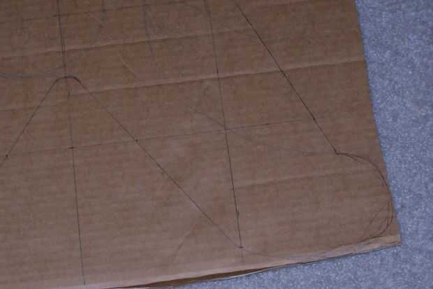 -Trace una escala por rejilla en el papel cuadriculado sobre el esbozo de Gman. He utilizado 5 plazas en el papel cuadriculado es igual a 6 pulgadas en el cartón.