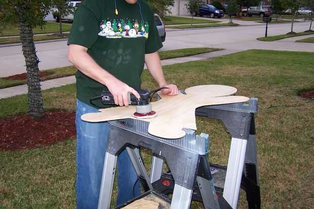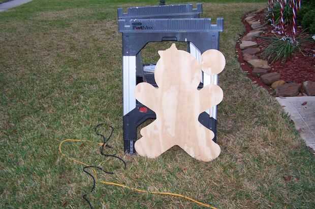 Usé 1/4" BC madera contrachapada (hoja de 4' x 8') que tiene un lado presanded y sin nudos. The Home Depot cortar la madera contrachapada de media dos maneras haciendo cuatro piezas iguales mide 2' x 4'. Estas son las plazas que solía hacer a cada hombre de pan de jengibre.
