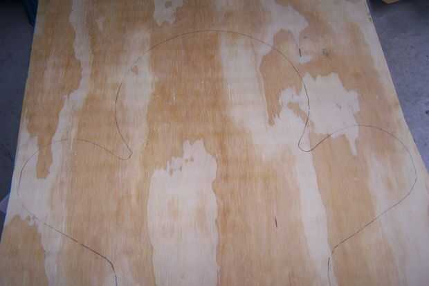-Trace una línea alrededor de la cartulina con lápiz sobre madera contrachapada. Una vez más, sólo necesita preocuparse por el esquema en este punto, no los detalles.