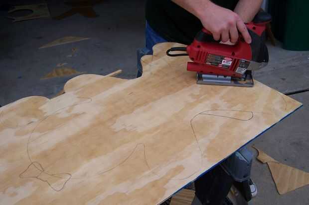 -Utilizando una sierra de calar (procedimientos de seguridad del fabricante siguientes), cortar la madera contrachapada de Gman.