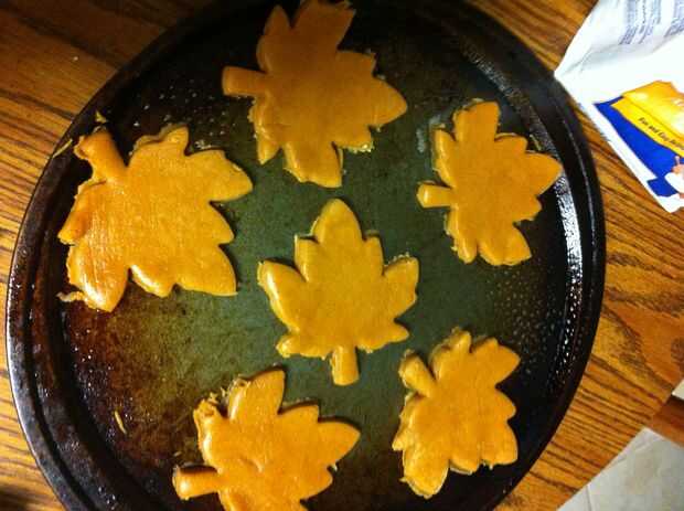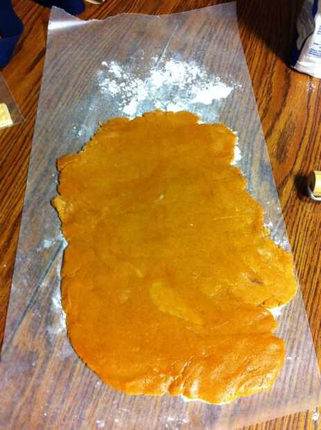 PRECALIENTA el horno a 350 grados. Grasa para hornear. Sobre una superficie enharinada, estirar la masa a 1/8 de pulgada de espesor y cortar en formas. Coloque 2 pulgadas aparte en bandeja y hornear durante 10 minutos en un horno precalentado. Luego dejan enfriar.