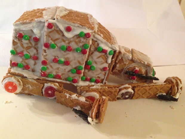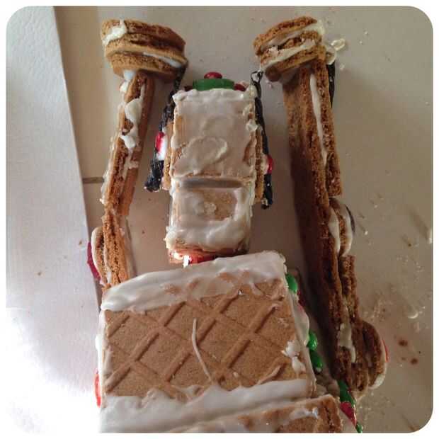 Para crear las patas, me Pegué dos pedazos de pan flaco junto con un protector de la vida en la parte superior y la media ya que es "común". Para los pies, apiladas 3 redondo pan de jengibre juntas las piezas. Puede añadir dos trozos de regaliz negro corto en el lado de los pies así.