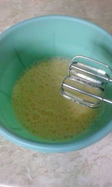 En un tazón grande 4 huevos y mezclarlos juntos.