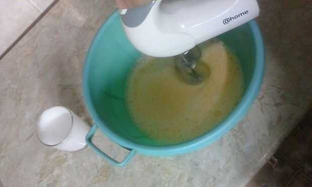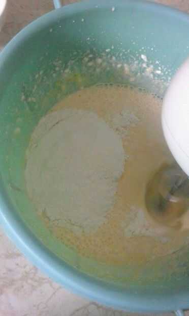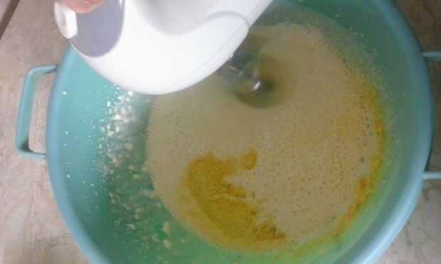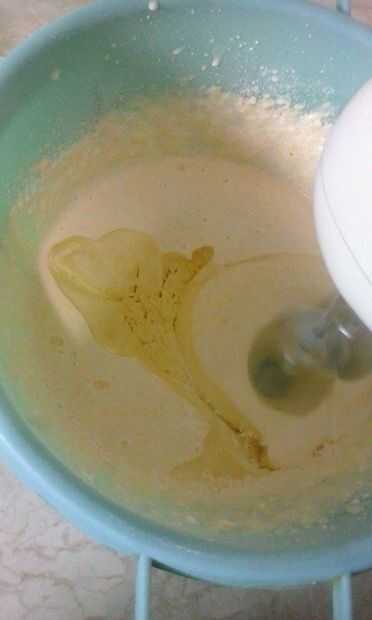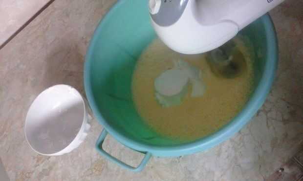 Luego lentamente agregar yogur, crema agria, granos de maíz, harina, aceite y agua mineral (uno a la vez) y mezclar hasta que tengamos una mezcla de la línea.