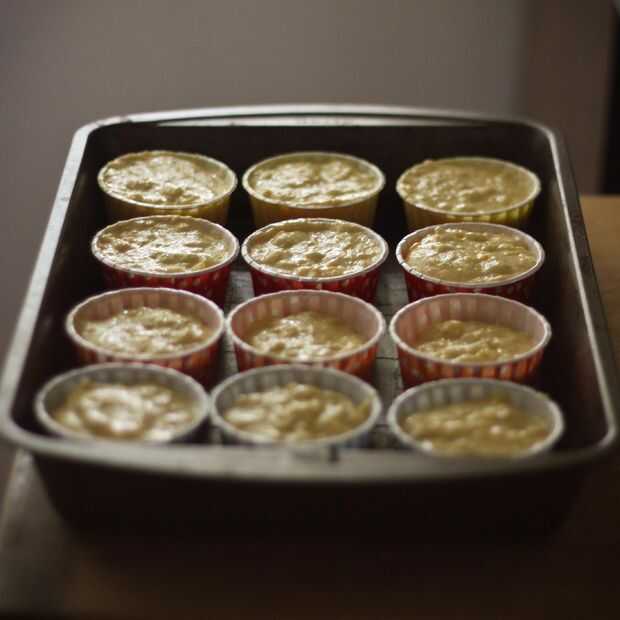 Un molde de cupcake con papeles pintados/capa de la línea y luego Vierta la mezcla de pan de maíz en los trazadores de líneas hasta que cada una sobre 2/3rds completo. No llenarlos más alto que esto, de lo contrario cuando se levantan no alojarte firmes y creciendo más altos, pero en cambio el bateador a derramar sobre los lados y hacer un lío.