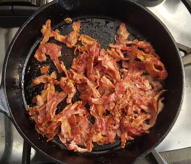 En una sartén grande sobre fuego medio-alto, cocine la panceta hasta que esté crujiente. Transferir a un plato forrado de toalla de papel para drenar, dejando la grasa en la sartén.