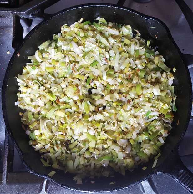 Añadir el puerro a la grasa y cocine, revolviendo ocasionalmente, hasta suaves, 5 a 10 minutos.