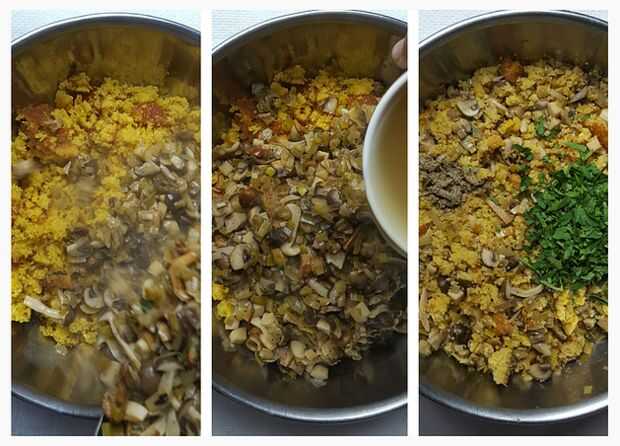 Paso 7: Mezcla de setas, caldo y perejil