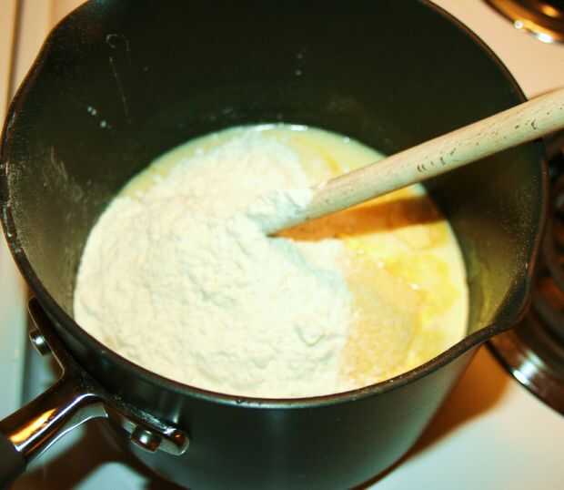 Añadir la harina de maíz, la harina y la sal y revolver hasta que se se mezcla. Algunos grumos son buenos.