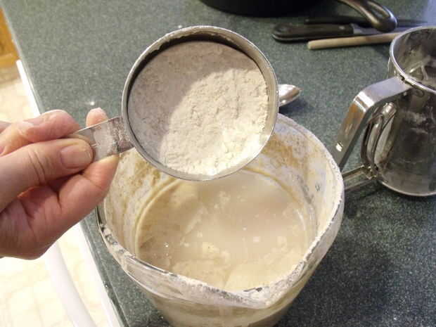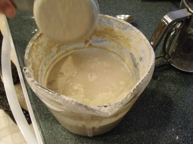 Pan de masa fermentada de un motor de arranque (1 / 10 paso)
