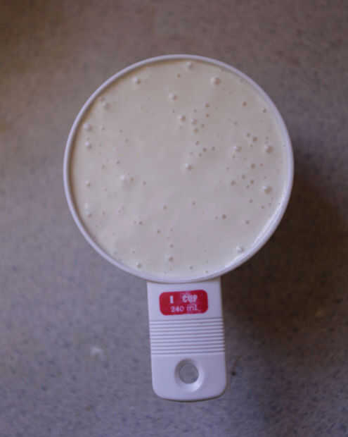 Añadir 1 taza masa madre y 2 huevos. La primera parte de esta receta se mezclará con la pala, luego mueve al gancho de pan para amasar harina.