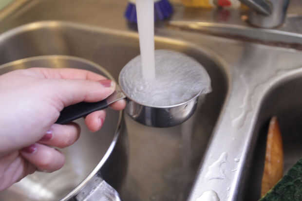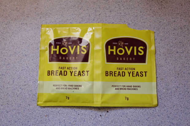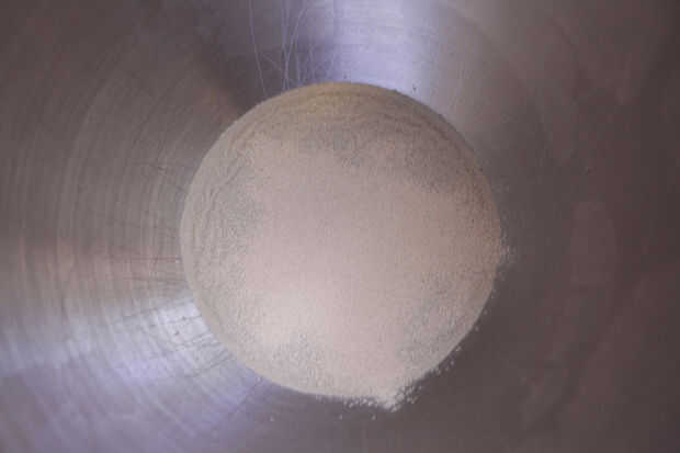 Añadir media taza de agua a su tazón y espolvorear la levadura sobre el agua. Deje reposar hasta que la levadura se hidrata - unos 5 minutos.