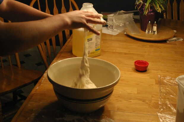 La masa está lista para su segundo ascenso. Tienes dos opciones. Usted puede ya sea aceite el interior del recipiente para que la masa se deslice fácilmente cuando es momento de ponerla en el horno.
