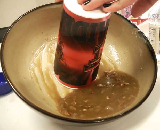 Después de taza se coloca en un tazón, distribuir uniformemente la mezcla alrededor de la taza.