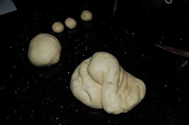 1. Seguir amasando hasta que la masa esté suave y no demasiado pegajosa en la superficie y elástico.