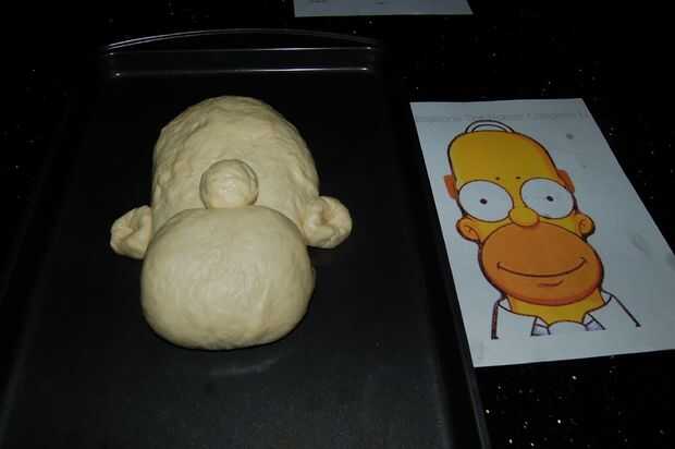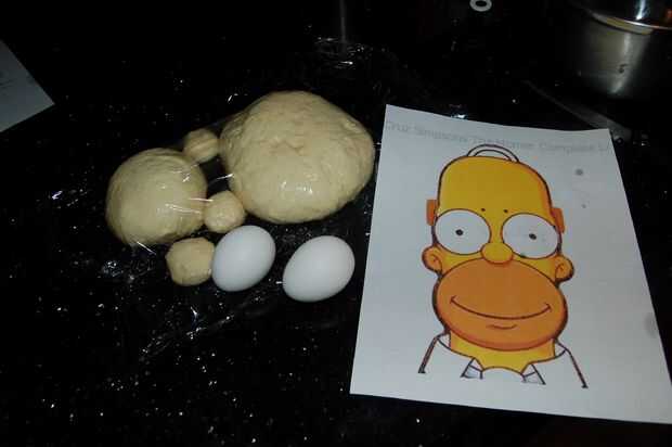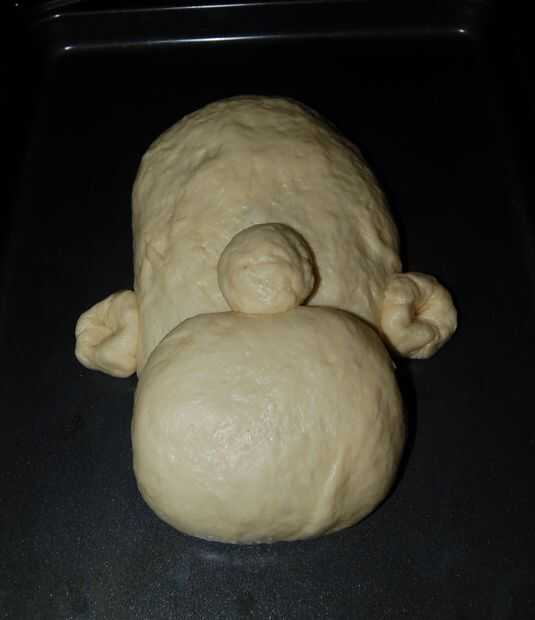 5. Transferir a una superficie limpia. Divida la masa en porciones para Sr. chispa. Amase en el área de la boca bolas - cabeza principal grande, pequeña nariz y dos orejas.