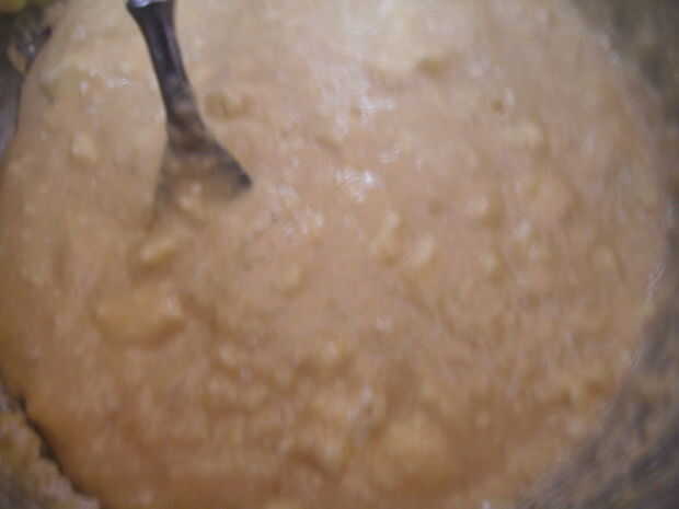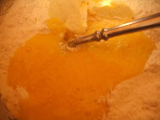 Añadir el huevo, la vainilla, mantequilla y pulpa de naranja. Luego se mezclan todos juntos.