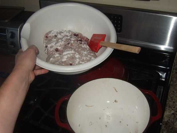 - Levante el recipiente de la parte superior. Vuelta el recipiente y luego coloca la masa en él. Generalmente pongo el lado que estaba hacia arriba abajo.