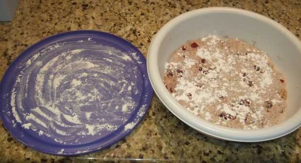 - Si el interior de la parte superior del tazón de fuente está húmedo, séquelo, del lugar de arriba hacia abajo sobre la mesa y harina. Como alternativa, puede utilizar una tabla para cortar grande.