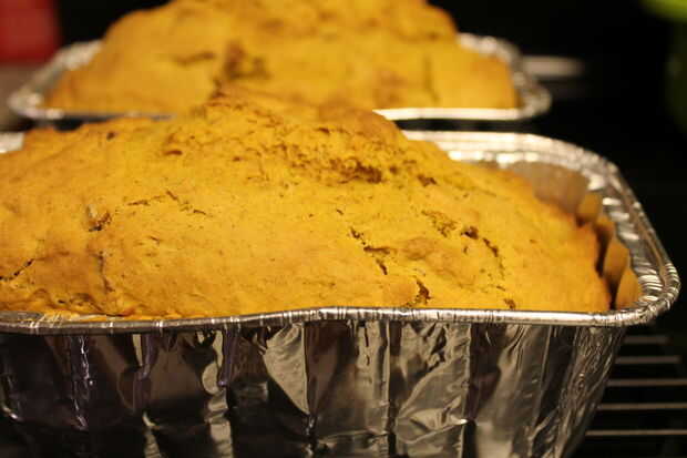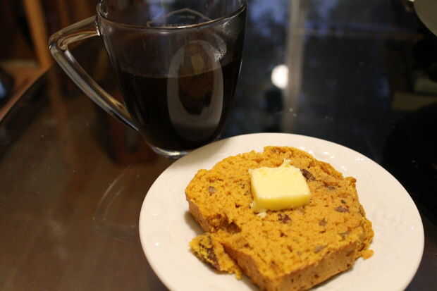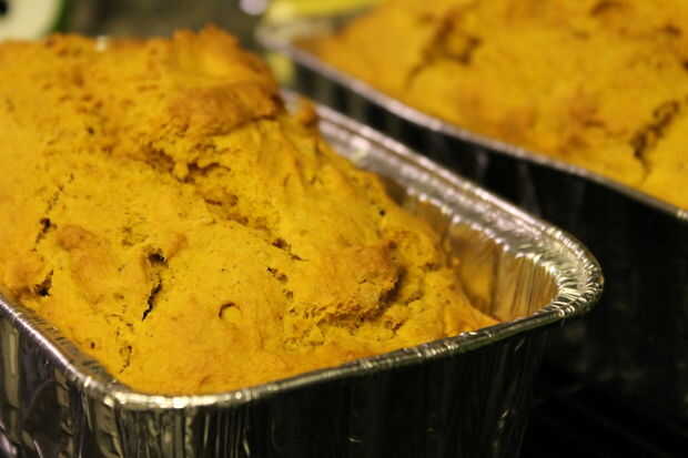 mi amor de calabaza es que definitivamente ha madurado en los últimos años. Nunca fui un gran fan hasta que conocí a mi novio que es fanático de calabaza borderline. En un reciente viaje a visitar a sus padres, su mamá hizo un cuerno de la abundancia de productos de panadería para contentar a nuestras bocas completos y nuestros hambrientos. Una de las cosas que hizo fue este pan. Yo comí probablemente dos panes todos a mí mismo.