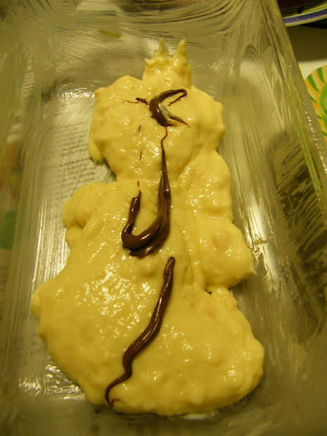 Vierta la masa más cubierta de nutella, luego cubrir con nutella más