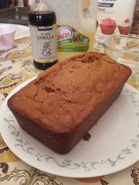Hornear a 325 grados durante 1 hora. Comprobar con un palillo de dientes. Cuando salga limpio se hace su delicioso pan de pastel de calabaza.