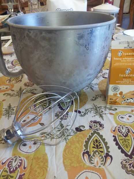 Cuando esté listo para servir, hacen batida crema o usted podría comprar cool whip si quieres. Es muy sencillo simplemente tamizar el azúcar en polvo a tu kitchenaid, añada la vainilla un poco y batir bien hasta que formen picos. Para una descripción más detallada, te sugiero revisar Forkable de instructable... Hacer crema batida fresca.