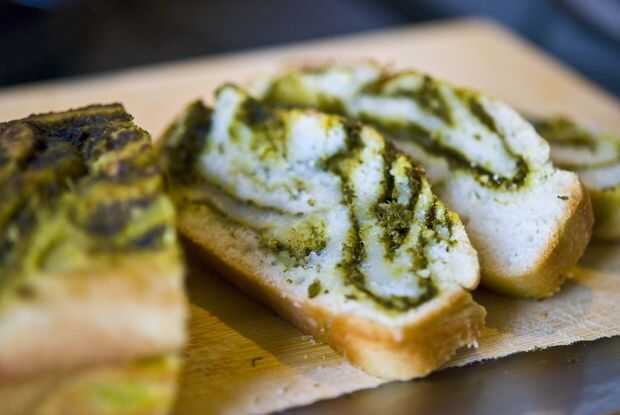 Pesto es el perfecto alimento verde.Servir sobre pasta, witheggs, con queso, galletas, pollo o pescado, en pasta o tortillas o con casi cualquier otra cosa que necesita sabor fantástico. Recientemente comí algunos corazones de alcachofa marinados que