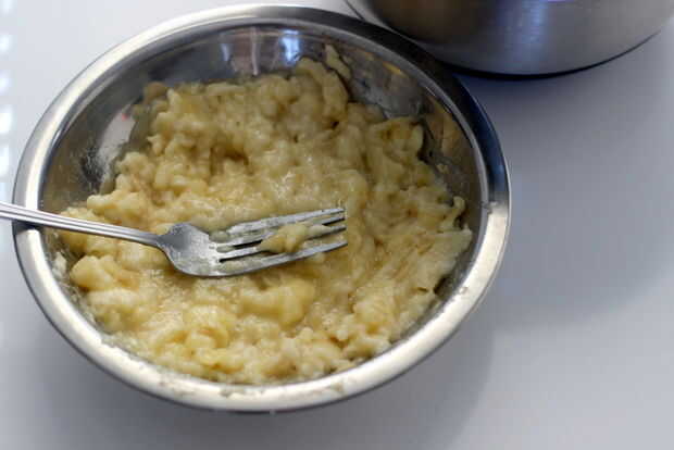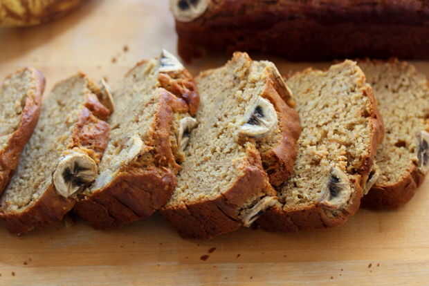 Instrucciones de la receta: Precalienta el horno a 375 grados, engrasar dos moldes de pan medio y ponga a un lado. En un recipiente mediano Coloque la harina, sal y bicarbonato de sodio y apartar. En un tazón grande crema de azúcar, mantequilla de maní y los huevos; Añadir el puré de plátano aplastado, calabaza y vainilla a la mezcla.