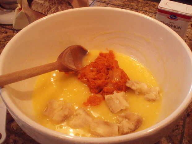 Sobre la ruptura de la banana madura bastante fácilmente usé sólo una cuchara, trocitos de plátano están bien pero se puede utilizar un mezclador si prefiere una mezcla más suave.