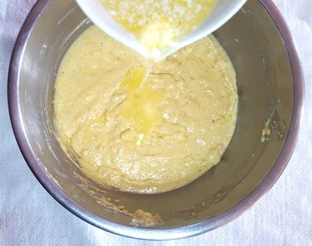 Derretir 6 cucharadas de manteca y doblez de hasta sólo combinar, entonces deja mezcla reposar 5 minutos.