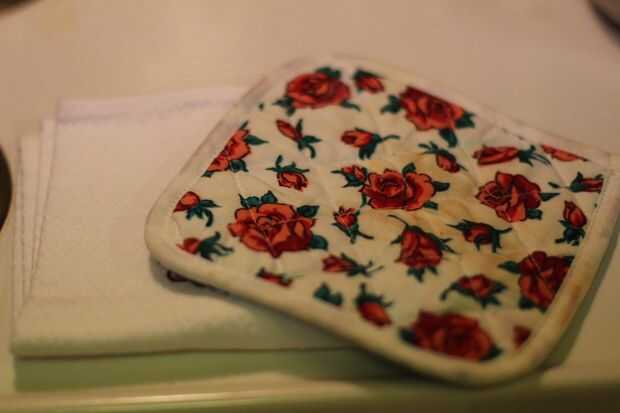 El horno está caliente, el pan está caliente... 425 grados caliente para ser exactos. No cometas el error de agarrar la manija sin un sostenedor de toalla o pote (no me preguntan cómo sé esto).