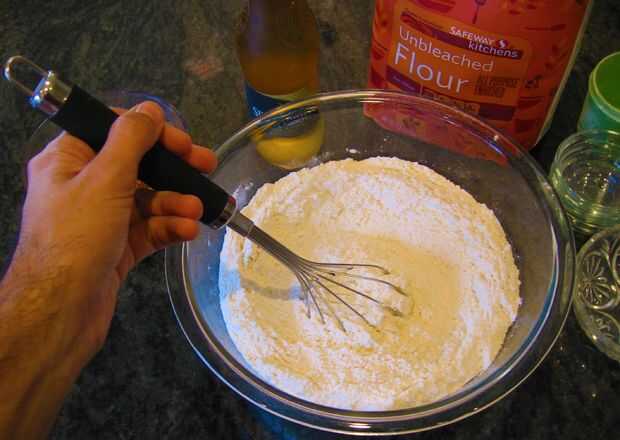 4. Batir los ingredientes secos para que todo sea bonito y mezclados.
