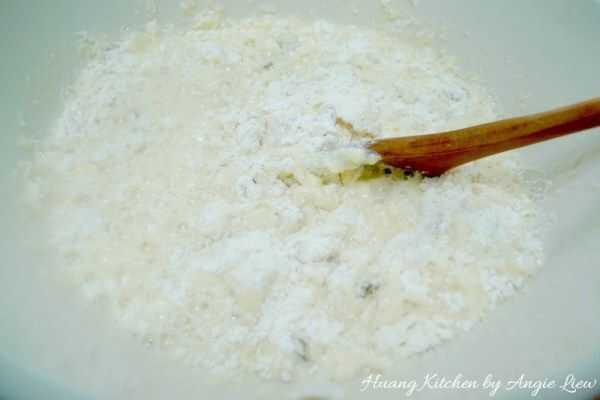 Paso 15: Con una espátula o cuchara de madera, revuelva la mezcla hasta que solo se humedezca.